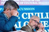 XI Санкт-Петербургский международный форум объединенных культур. Итоговая сессия под председательством заместителя председателя правительства России Татьяны Голиковой. Вице-губернатор Санкт-Петербурга Борис Пиотровский (справа) перед началом итоговой сессии.
