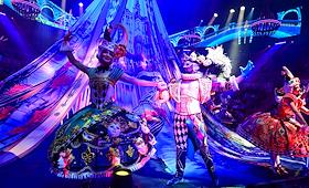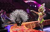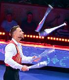 IV Международный фестиваль циркового искусства "Без границ" в Большом Санкт-Петербургском государственном цирке на Фонтанке. Цирковое шоу на церемонии открытия фестиваля. Певец Юлиан (в центре) во время выступления на церемонии.
