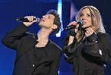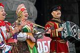День города в Москве. Праздничные мероприятия, посвященные 878-й годовщине основания города, в парке Победы на Поклонной горе. Концерт звезд "Дорожного радио" "С днем рождения, Москва!". Певцы Александр Эгромжан (слева) и Людмила Соколова во время выступления на концерте.