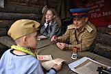 День города в Москве. Праздничные мероприятия, посвященные 878-й годовщине основания города, в парке Победы на Поклонной горе. Жанровая фотография. Участник праздничных мероприятий на одной из площадок-реконструкций.