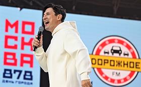 День города в Москве. Праздничные мероприятия, посвященные 878-й годовщине основания города, в парке Победы на Поклонной горе. Концерт звезд "Дорожного радио" "С днем рождения, Москва!". Певец Филипп Киркоров во время выступления на концерте.
