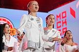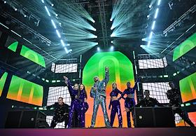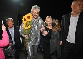 День города в Москве. Праздничные мероприятия, посвященные 878-й годовщине основания города, в парке Победы на Поклонной горе. Концерт звезд "Дорожного радио" "С днем рождения, Москва!". Певцы Филипп Киркоров (в центре) и Марго (вторая справа) на концерте.