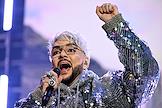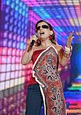 День города в Москве. Праздничные мероприятия, посвященные 878-й годовщине основания города, в парке Победы на Поклонной горе. Концерт звезд "Дорожного радио" "С днем рождения, Москва!". Певица Зара во время выступления на концерте.