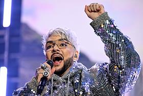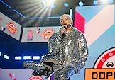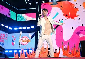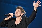 День города в Москве. Праздничные мероприятия, посвященные 878-й годовщине основания города, в парке Победы на Поклонной горе. Концерт звезд "Дорожного радио" "С днем рождения, Москва!". Певец Паскаль во время выступления на концерте.