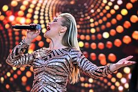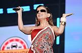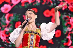 День города в Москве. Праздничные мероприятия, посвященные 878-й годовщине основания города, в парке Победы на Поклонной горе. Концерт звезд "Дорожного радио" "С днем рождения, Москва!". Певица Таисия Повалий во время выступления на концерте.