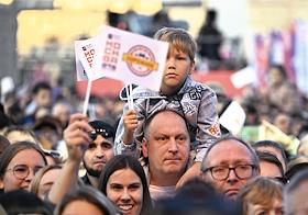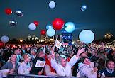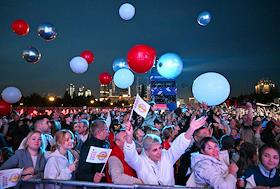 День города в Москве. Праздничные мероприятия, посвященные 878-й годовщине основания города, в парке Победы на Поклонной горе. Концерт звезд "Дорожного радио" "С днем рождения, Москва!". Зрители на концерте.