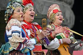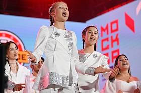 День города в Москве. Праздничные мероприятия, посвященные 878-й годовщине основания города, в парке Победы на Поклонной горе. Концерт звезд "Дорожного радио" "С днем рождения, Москва!". Детский хор во время выступления на концерте.
