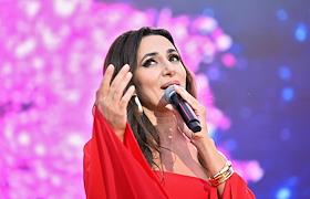 День города в Москве. Праздничные мероприятия, посвященные 878-й годовщине основания города, в парке Победы на Поклонной горе. Концерт звезд "Дорожного радио" "С днем рождения, Москва!". Певица Лариса Долина во время выступления на концерте.