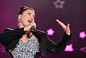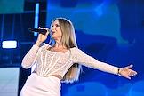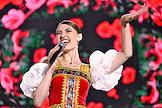 День города в Москве. Праздничные мероприятия, посвященные 878-й годовщине основания города, в парке Победы на Поклонной горе. Концерт звезд "Дорожного радио" "С днем рождения, Москва!". Певица Юлия Михальчик во время выступления на концерте.
