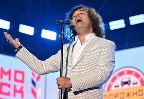 День города в Москве. Праздничные мероприятия, посвященные 878-й годовщине основания города, в парке Победы на Поклонной горе. Концерт звезд "Дорожного радио" "С днем рождения, Москва!". Певец Александр Эгромжан во время выступления на концерте.