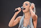 День города в Москве. Праздничные мероприятия, посвященные 878-й годовщине основания города, в парке Победы на Поклонной горе. Концерт звезд "Дорожного радио" "С днем рождения, Москва!". Певица Жасмин во время выступления на концерте.