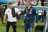 Мир Российская Премьер-Лига (РПЛ) 2025/2026. 8-й тур. Матч между командами "Ростов" (Ростов-на-Дону) - ЦСКА (Москва) на стадионе "Ростов Арена". Главный тренер команды "Ростов" Джонатан Альба (слева) и главный тренер команды ЦСКА Фабио Челестини (справа) перед началом матча.