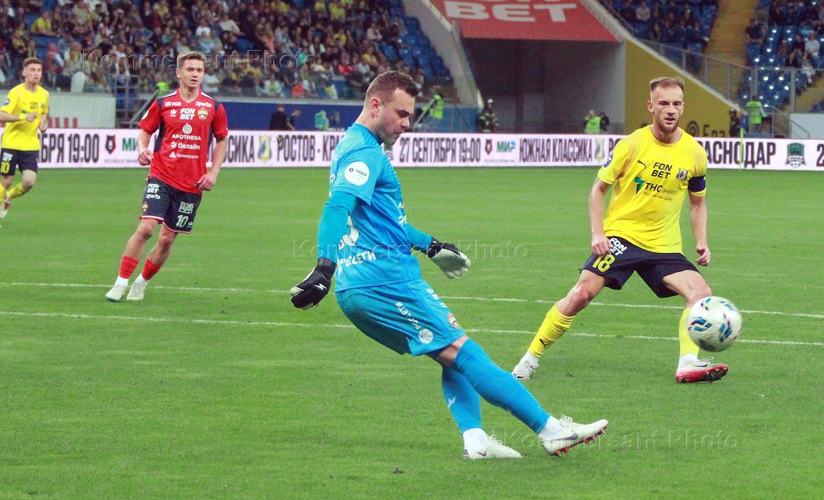 Мир Российская Премьер-Лига (РПЛ) 2025/2026. 8-й тур. Матч между командами "Ростов" (Ростов-на-Дону) - ЦСКА (Москва) на стадионе "Ростов Арена". Вратарь команды ЦСКА Игорь Акинфеев (слева) во время матча.