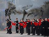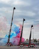 Финал соревнований по скоростному маневрированию на пожарных автомобилях "Трасса 1" у "Газпром Арены". Жанровая фотография. Церемония открытия.