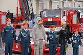 Финал соревнований по скоростному маневрированию на пожарных автомобилях "Трасса 1" у "Газпром Арены". Жанровая фотография. Торжественная церемония открытия соревнований.