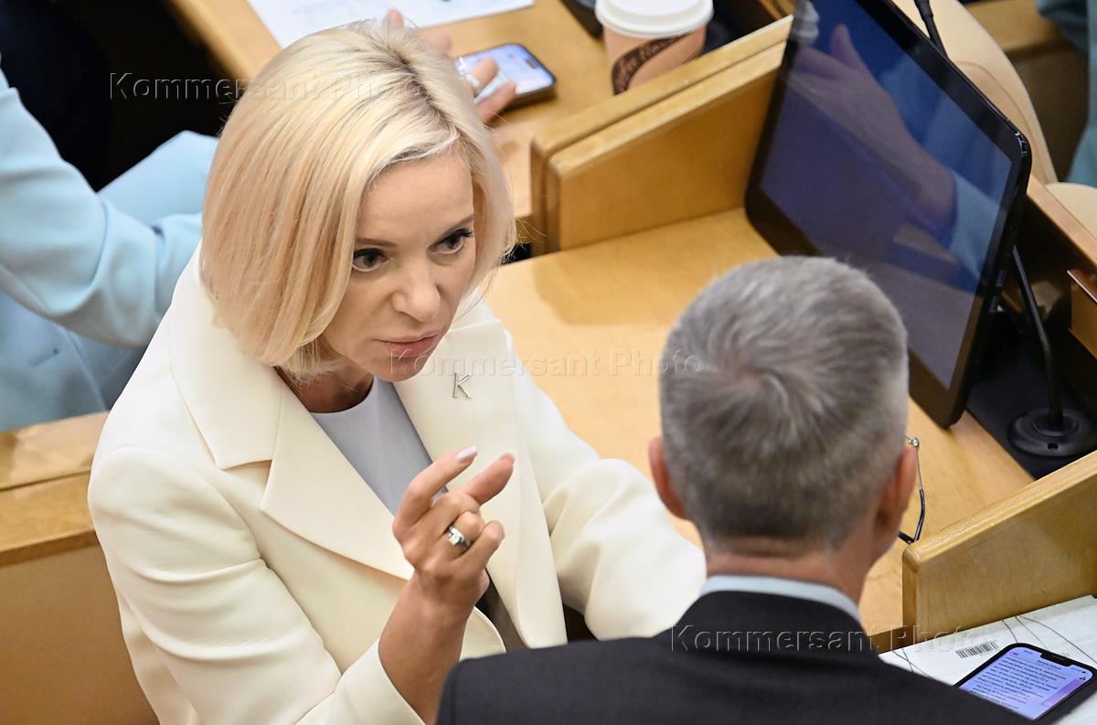 Пленарное заседание Государственной думы (ГД) России. Председатель комитета ГД России по просвещению Ирина Белых (справа) во время заседания.