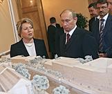 Губернатор Санкт-Петербурга Валентина Матвиенко (слева), Президент России Владимир Путин (в центре) и министр экономического развития и торговли России Герман Греф (справа) во время заседании II — ого Всемирного конгресса соотечественников, проживающих за рубежом. Конгресс прошел в Таврическом дворце.