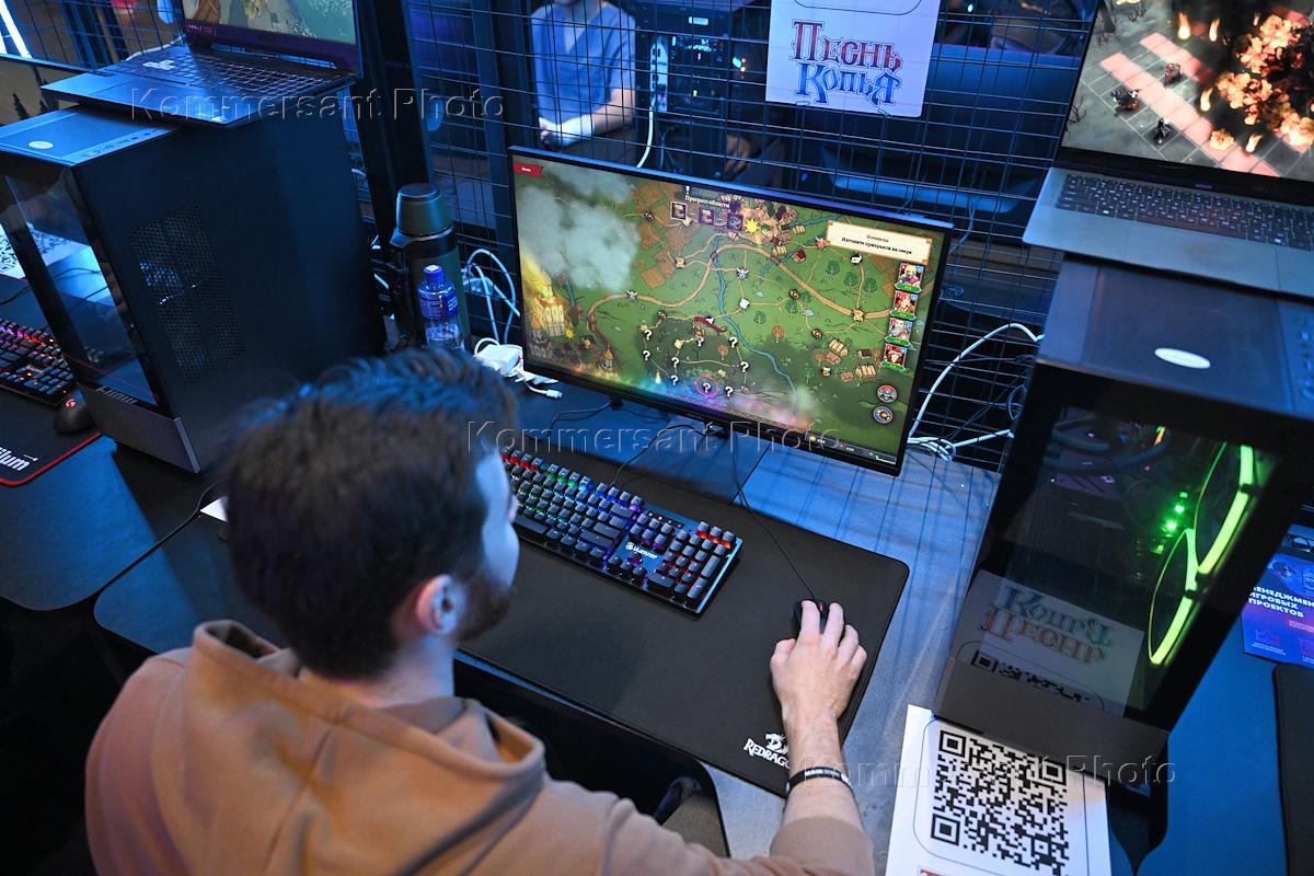 Всероссийская выставка-фестиваль видеоигр "Игропром 2025" на площадке концертного зала Main Stage. Участники фестиваля. Креативный директор студии Cyberia Nova Сергей Русских во время презентации новой игры студии Cyberia Nova "Земский собор".