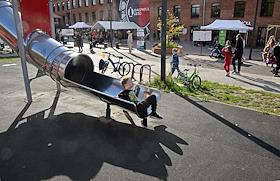 Ежегодный фестиваль креативных индустрий "Энтузиасты" на территории арт-квартала "Фабрика1830" (бывшая Балашихинская хлопкопрядильная фабрика). Посетители на фестивале.