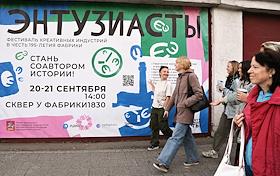 Ежегодный фестиваль креативных индустрий "Энтузиасты" на территории арт-квартала "Фабрика 1830" (бывшая Балашихинская хлопкопрядильная фабрика).