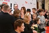 Премьера сериала "Няня Оксана" на канале "Пятница" в кинотеатре "Художественный". Актер Александр Мартынов (справа) с супругой Марией (в центре) и сыном Иваном на премьере.