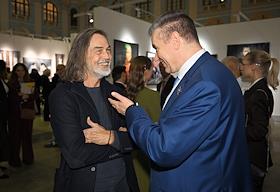 Ярмарка современного академического искусства "Арт Россия. Классика. Новый взгляд" в Гостином Дворе. Церемония открытия. Скульптор Василий Селиванов (справа) на церемонии.