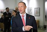 Ярмарка современного академического искусства "Арт Россия. Классика. Новый взгляд" в Гостином Дворе. Церемония открытия. Председатель Либерально-демократической партии России (ЛДПР), руководитель фракции ЛДПР в Государственной думе (ГД) России Леонид Слуцкий (справа) на церемонии.