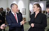 Ярмарка современного академического искусства "Арт Россия. Классика. Новый взгляд" в Гостином Дворе. Церемония открытия. Президент Корпорации "Синергия" Вадим Лобов (слева) и сооснователь ярмарки Art Russia, искусствовед Елизавета Фролова (справа) на церемонии.