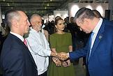 Ярмарка современного академического искусства "Арт Россия. Классика. Новый взгляд" в Гостином Дворе. Церемония открытия. Бизнесмен Арно Косян (слева) и актриса Марьям Тилляева (справа) на церемонии.