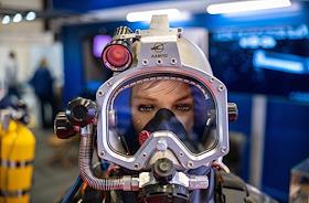 8-ая Международная выставка и конференция по гражданскому судостроению, судоходству, деятельности портов, освоению океана и шельфа "НЕВА 2025" в конгрессно-выставочном центре "Экспофорум". Жанровая фотография. Водолазное оборудование, представленное АО "КАМПО".