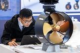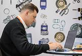 8-ая Международная выставка и конференция по гражданскому судостроению, судоходству, деятельности портов, освоению океана и шельфа "НЕВА 2025" в конгрессно-выставочном центре "Экспофорум". Жанровая фотография. Посетитель на выставке.