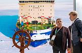 8-ая Международная выставка и конференция по гражданскому судостроению, судоходству, деятельности портов, освоению океана и шельфа "НЕВА 2025" в конгрессно-выставочном центре "Экспофорум". Жанровая фотография. Посетительница на выставке.