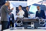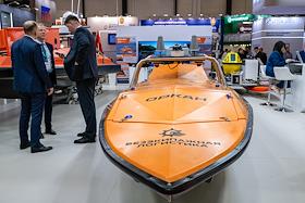 8-ая Международная выставка и конференция по гражданскому судостроению, судоходству, деятельности портов, освоению океана и шельфа "НЕВА 2025" в конгрессно-выставочном центре "Экспофорум". Жанровая фотография. Безэкипажный катер "Оркан" на выставке.