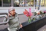 Виды Омска. Жанровая фотография. Пожилая женщина торгует цветами на улице.