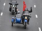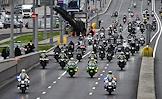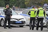 Московский мотофестиваль по случаю закрытия мотосезона на Воробьёвых горах. Сотрудники Центра организации дорожного движения (ЦОДД) перед началом мотопробега по Садовому кольцу.