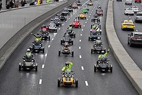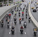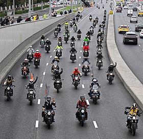 Московский мотофестиваль по случаю закрытия мотосезона на Воробьёвых горах. Движение на внутренней стороне Садового кольца.