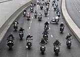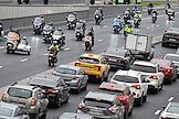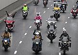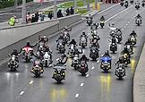 Московский мотофестиваль по случаю закрытия мотосезона на Воробьёвых горах. Участники во время мотопробега по Садовому кольцу.
