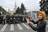 Московский мотофестиваль по случаю закрытия мотосезона на Воробьёвых горах. Участники во время совместного фотографирования перед началом мотопробега.
