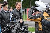 Московский мотофестиваль по случаю закрытия мотосезона на Воробьёвых горах. Руководитель департамента транспорта и развития дорожно-транспортной инфраструктуры города Москвы Максим Ликсутов (в центре) перед началом мотопробега.