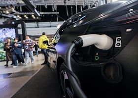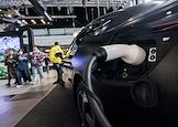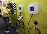 Международная строительная выставка "100+ TechnoBuild" в МВЦ "Екатеринбург-ЭКСПО". Жанровая фотография. Процесс зарядки электроавтомобиля.