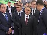 XII Международный строительный форум и выставка "100+ TechnoBuild" на площадке Международного выставочного центра (МВЦ) "Екатеринбург-ЭКСПО". Министр строительства и жилищно-коммунального хозяйства России Ирек Файзуллин (в центре) во время осмотра выставки.