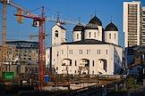Жанровая фотография. Строительство на Ходынском поле у станции метрополитена "ЦСКА". Храм преподобного Сергия Радонежского на Ходынском поле.