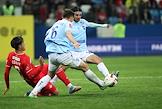Фонбет - Кубок России по футболу 2025/26. 5-й Тур. Матч между командами "Пари Нижний Новгород" (Нижний Новгород) - "Спартак" (Москва) на стадионе "Совкомбанк Арена". Игрок команды "Спартак" Олег Рябчук (справа) во время матча.