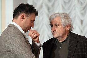 Презентация книги писателя Льва Данилкина "Палаццо мадамы: воображаемый музей Ирины Антоновой" в Доме Пашкова. Искусствовед, арт-менеджер Михаил Каменский (в центре) и художник, архитектор Юрий Аввакумов (справа) на презентации.