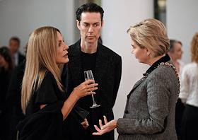 Презентация книги писателя Льва Данилкина "Палаццо мадамы: воображаемый музей Ирины Антоновой" в Доме Пашкова. Слева направо: телеведущая Сати Спивакова, певец Марк Тишман и актриса Ксения Лаврова-Глинка на презентации.