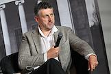 Презентация книги писателя Льва Данилкина "Палаццо мадамы: воображаемый музей Ирины Антоновой" в Доме Пашкова. Писатель Лев Данилкин (справа) на презентации.