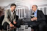 Презентация книги писателя Льва Данилкина "Палаццо мадамы: воображаемый музей Ирины Антоновой" в Доме Пашкова. Писатель Лев Данилкин (слева) и искусствовед, арт-менеджер Михаил Каменский (справа) на презентации.