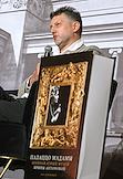 Презентация книги писателя Льва Данилкина "Палаццо мадамы: воображаемый музей Ирины Антоновой" в Доме Пашкова. Председатель правления ФГУП "Творческо-производственное объединение "Киностудия "Союзмультфильм", генеральный директор киностудии имени М. Горького Юлианна Слащева (слева) и генеральный директор Российской государственной библиотеки Вадим Дуда (справа) на презентации.