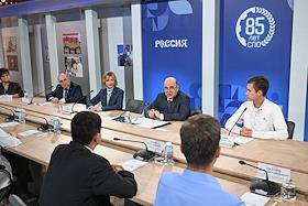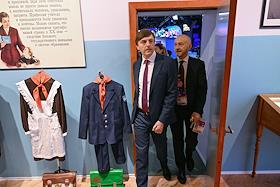 Заместитель министра просвещения России Владимир Желонкин во время посещения выставки "85 лет системе СПО: сила в мастерстве!" на территории национального центра "Россия".