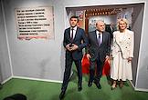Председатель правительства России Михаил Мишустин (в центре), министр просвещения России Сергей Кравцов (слева) и заместитель председателя Государственной думы России Виктория Абрамченко (справа) во время посещения выставки "85 лет системе СПО: сила в мастерстве!" на территории национального центра "Россия".